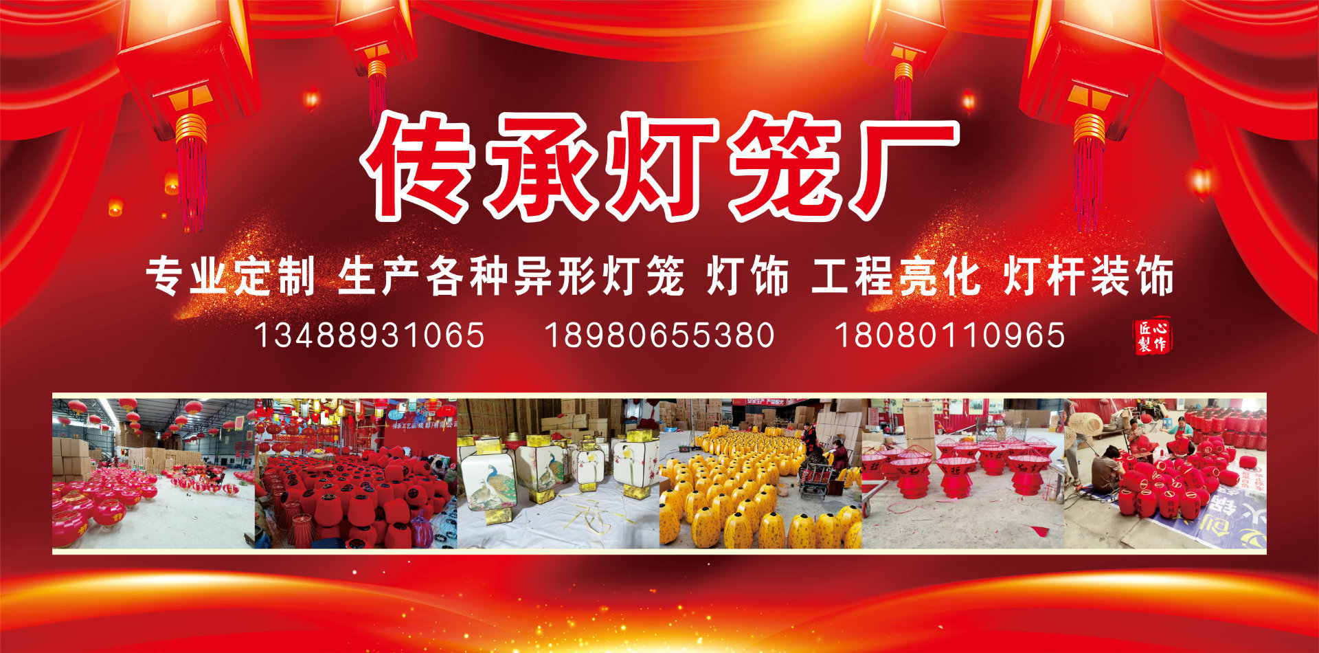 傳承工藝品(成都)有限公司位于天府之國成都清流柳泉村,作為西部文化重鎮(zhèn)成都一直是人文藝術(shù)活躍的地區(qū)。傳承燈籠制作基地---成都新繁,地理位置優(yōu)越,交通方便,可直達各地,便捷的交通區(qū)位,傳統(tǒng)文化與現(xiàn)代工藝的優(yōu)良結(jié)合。本公司專業(yè)批發(fā)銷售各種類型的宮燈、冬瓜燈籠、植絨燈籠、仿古燈籠、廣告燈籠、綢布燈籠等。我公司不僅能大批量的定制燈籠,還能為各企事業(yè)單位燈籠點綴布展,以紅紅火火的中國風(fēng)引起市場的共鳴。